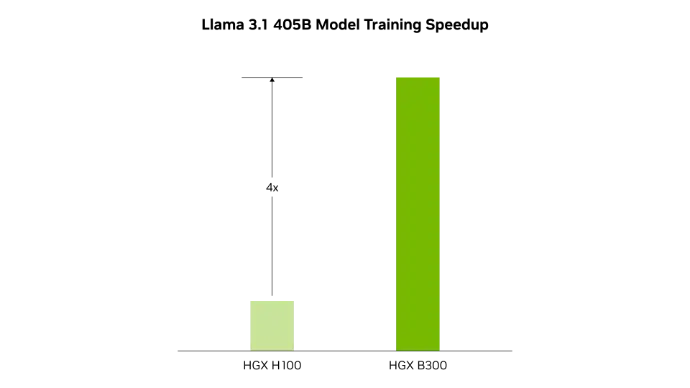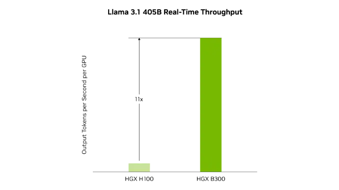 HGX B300 achieves up to 11x higher inference performance over the previous H100 generation for models such as Llama 3.1 405B.